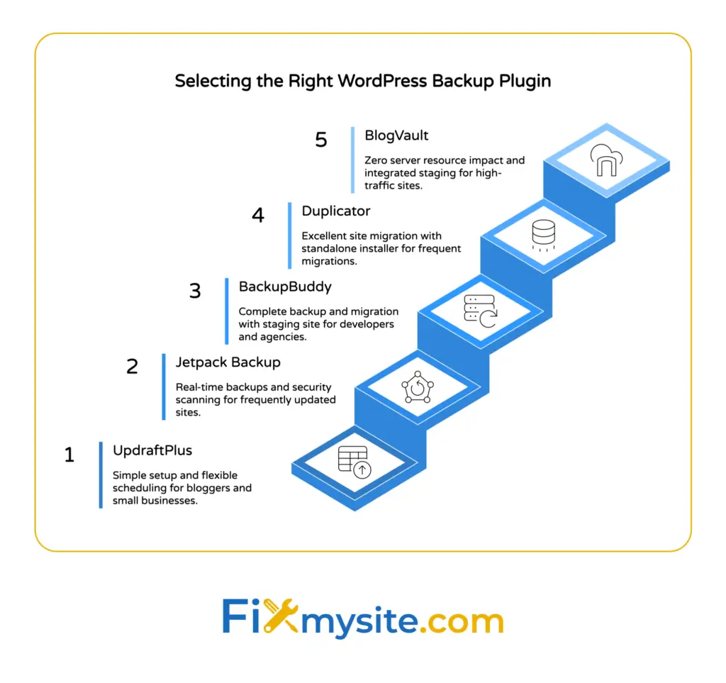 Backup plugins use server resources when creating backups. Large sites with thousands of images and posts need plugins that handle big backups without crashing. Incremental backups reduce the load by only copying changed files.